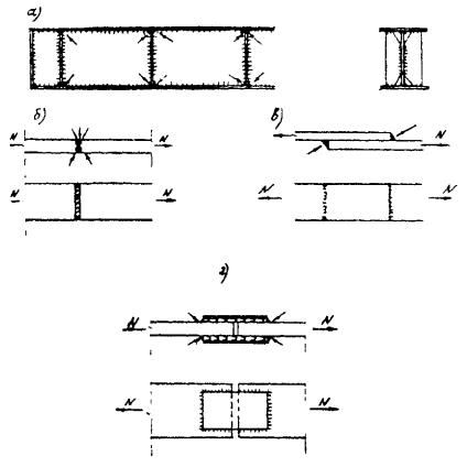 между продольными и поперечными стенами. Разрывы или выдергивание отдельных
