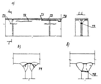 Повреждения отдельных сварных швов в местах опирания подкрановых балок на