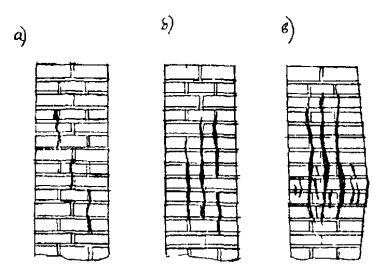 Диагональные трещины в сплошных поперечных каменных стенах, наклонные и
