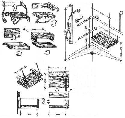 Рис. 14. Типы стационарных сидений в душевых. Зарубежный опыт (Х.Ю. Калмет) |