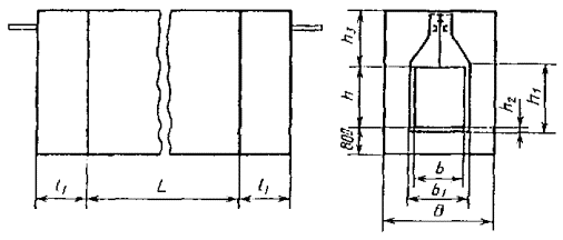 Примечание. Размеры обрабатываемого изделия указывают следующим образом: для установок проходных с подвесным толкающим непрерывно движущимся конвейером с одним ходом приводится шифр; для установок проходных с напольным непрерывно движущимся конвейером с одним ходом - ширина и высота изделия в метрах, для остальных установок - длина, длина, ширина и высота в метрах. Пример условного обозначения терморадиационно-конвективной (Т/К) сушильной установки с электрообогревом (Э) проходной (П) с подвесным толкающим (Т) непрерывно движущимся конвейером с тепловым подпором воздуха (В), одноходовой (1), в которой обрабатываются изделия шириной 0,63 м и высотой 1,6 м (05); Сушильная установка Т/К-ЭПТВ-1-05 ГОСТ 23093-78 Пример условного обозначения терморадиационной (Т) сушильной установки с электрообогревом (Э) проходной (П) с напольным (Н) непрерывно движущимся конвейером, однопроходной (1), в которой обрабатываются изделия шириной 0,4 м и высотой 1,0 м; Сушильная установка Т-ЭПН-1-0,4×1,0 ГОСТ 23093-78 Пример условного обозначения конвективной (К) сушильной установки с газовым обогревом (Г) проходной (П) с напольным циклически движущимся конвейером (НЦ), двухходовой (2), в которой обрабатываются изделия длиной 1,5 м, шириной 0,63 м и высотой 1,0 м; Сушильная установка К-ГПНЦ-2-1,5×0,63×1,0 ГОСТ 23093-78 (Измененная редакция, Изм. № 2). 1.4. Выбор типов сушильных установок приведен в рекомендуемом приложении. 2. ОСНОВНЫЕ РАЗМЕРЫ2.1. Основные размеры сушильных установок конвективных проходных с подвесным конвейером одноходовых (черт. 1) должны соответствовать табл. 3. Черт. 1 Таблица 3 мм