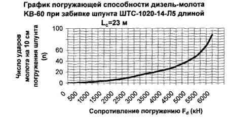 = 315 см2 в конце забивки молотом 3500 кг, равные σ Погружающая способность дизель-молота