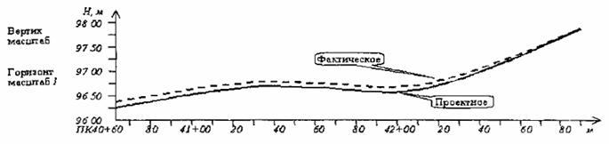 Исполнительная съемка продольного профиля на уч. ПК 40 + 60 - ПК 43 + 00