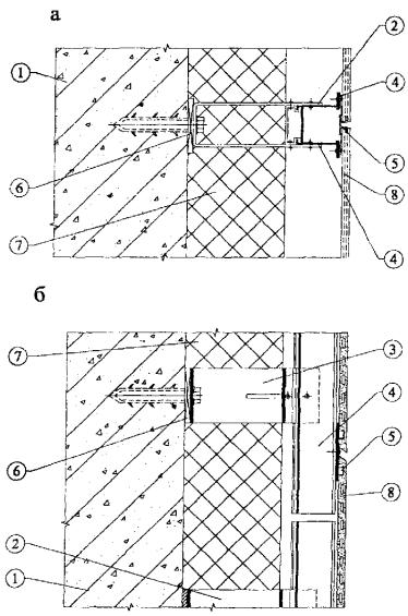 что меньше максимальной упругости водяного пара выходящего из прослойки Е = 0,39. 7.8. Заключение 7.8.1. На основании выполненных теплотехнических расчетов наружных стен фасадной системы «U-KON», определены: 7.8.2. Теплозащитные качества системы 7.8.2.1. Требуемая толщина теплоизоляционных базальтовых минераловатных плит типа «Венти-Баттс» составляет при железобетонной несущей стене 0,16 м; при кирпичной стене 0,15 м. Приведенное сопротивление теплопередаче наружных стен при указанной толщине утеплителя составит: 3,3 м2 · °С/Вт. (При проемности 18 %). 7.8.2.2. Влажностный режим системы при указанных в п. 7.8.2.3 параметрах конструкции, см. пп. 7.8.2.2.1-7.8.2.3, указан ниже. 7.8.2.2.1. При отсутствии движения воздуха в прослойке по глади экранов с алюминиевым покрытием в отдалении от горизонтальных швов-зазоров влажностный режим может быть неудовлетворительный при расстоянии от приточных до вытяжных отверстий 18 м. 7.8.2.2.2. При наличии сквозных швов-зазоров, размерах экранов 1,2 × 0,6 м и расходе воздуха в прослойке 47 кг/м · ч влажностный режим стен удовлетворителен. 7.8.2.3. Параметры системы, при которых обеспечиваются указанные выводы в п. 7.8.2.2.2 следующие: 7.8.2.3.1. Высота горизонтального шва между экранами составляет 10 мм. 7.8.2.3.2. Толщина воздушной прослойки между утеплителем и экраном составляет 0,06 м. 7.8.2.3.3. Толщина (ширина) воздухозаборной щели внизу стены составляет 0,06 м (с перфорациями 50 % живого сечения), толщина (ширина) воздуховыводящей щели вверху стены должна быть не меньше воздухозаборной. 8. Состав проектно-сметной документации8.1. Рабочий проект или рабочая документация системы наружных ограждений фасадов с вентилируемым воздушным зазором включает следующие разделы: общую пояснительную записку, архитектурную часть, конструкторскую часть, конструкторскую часть по решению архитектурных деталей, специальные части (водосток, антенны, рекламу и т.п.) и сметы. 8.2. В общей пояснительной записке приводятся следующие данные: - архитектурная концепция решения фасадов здания и отдельных архитектурных элементов; - данные о конструктивном решении системы и ее элементов; - данные о решении специальных устройств на фасаде, если они имеются; - данные об эффективности энергосбережения принятых технических решений, результаты теплотехнических расчетов; - экологическая характеристика системы; - основные технико-экономические показатели системы. 8.3. Архитектурная часть включает чертежи фасадов здания, отдельных архитектурных элементов и узлов. На чертежах приводится цветовое решение фасада и его отдельных элементов. 8.4. Конструкторская часть включает чертежи всех конструктивных элементов системы, с узлами и деталями, а также полную спецификацию всех применяемых материалов и изделий. 8.5. Специальная часть включает чертежи фасадов с привязкой мест размещения специальных устройств, узлы и детали конструкций крепления этих устройств на фасаде, а также спецификацию оборудования, материалов и изделий, предусмотренных проектом. 8.6. Сметы на устройство системы составляются на основе действующих нормативов, единичных расценок, фактической стоимости оборудования и материалов, а также утвержденных заказчиком калькуляций на отдельные виды работ и элементы конструкций. 9. Технико-экономические показателиСтоимость системы для конкретных зданий зависит от многих факторов, в том чис