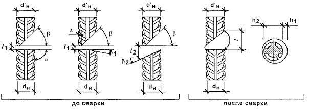 Геометрические параметры сварных соединений горизонтальных арматурных стержней