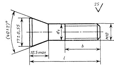 Постановлением Государственного комитета СССР по стандартам от 15 января 1981 г. № 3 срок введения установлен с 01.01.82 Проверен в 1986 г. Постановлением Госстандарта СССР от 23.06.86 № 1642 срок действия продлен до 01.01.97 Несоблюдение стандарта преследуется по закону 1. Настоящий стандарт распространяется на болты шинные класса точности С с номинальным диаметром резьбы 10 мм. (Измененная редакция, Изм. № 1). 2. Конструкция и размеры болтов должны соответствовать указанным на чертеже и в таблице.