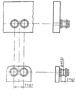 Срок действия с 01.07.76 до 01.07.96 Настоящий стандарт распространяется на резину и устанавливает метод определения сопротивления старению по ползучести, характеризующегося показателем старения по ползучести, относительной остаточной деформацией и изменением относительной деформации во времени. Сущность метода заключается в приложении к образцу постоянной растягивающей силы при повышенной температуре и определении удлинения во времени и остаточного удлинения. 1. АППАРАТУРА1.1. Прибор для испытания должен обеспечивать: крепление образцов в термостате на двух верхних и двух нижних роликах, конструкция и размеры которых указаны на чертеже. Ролики должны свободно вращаться и располагаться так, чтобы осевые линии были строго вертикальны. При этом расстояние между парами роликов должно быть не менее 10 мм. Верхние ролики должны находиться на высоте не менее 400 мм от дна термостата Расстояние от стенок термостата до роликов должно быть не менее 10 мм; автоматическое поддержание температуры в рабочем объеме термостата от 40 до 200 °С. Допускаемая погрешность измерительного прибора ±1 °С;