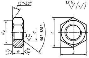 Постановлением Государственного комитета стандартов Совета Министров СССР от 12 сентября 1972 г. № 1709 дата введения установлена 01.01.74 Ограничение срока действия снято по протоколу № 5-94 Межгосударственного совета по стандартизации, метрологии и сертификации (ИУС 11-12-94) Издание 2006 г. с Изменениями № 1, 2, утвержденными в июне 1980 г., декабре 1986 г. (ИУС 9-80, 4-87). 1. Настоящий стандарт распространяется на шестигранные низкие гайки общего назначения с уменьшенным размером «под ключ» класса точности А с диаметром резьбы свыше 48 мм. (Измененная редакция, Изм. № 2). 2. Конструкция и размеры гаек должны соответствовать указанным на чертеже и в таблице.