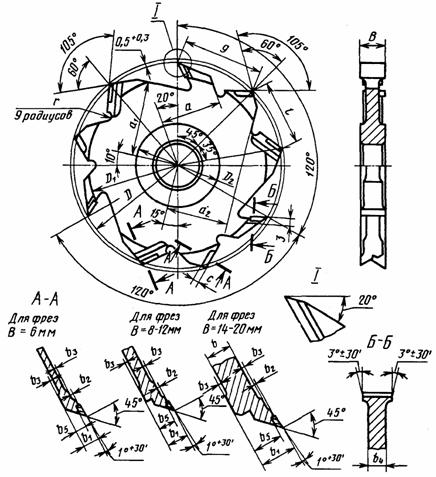 Фрезы D = 125 мм и шириной В = 4-5 мм