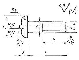 Постановлением Государственного комитета стандартов Совета Министров СССР от 12 сентября 1975 г. № 2397 срок введения установлен с 01.01.77 Проверен в 1981 г. Пост. Госстандарта от 29.12.81 № 5742 срок действия продлен до 01.01.92 Несоблюдение стандарта преследуется по закону 1. Настоящий стандарт распространяется на винты с цилиндрической скругленной головкой классов точности А и В с номинальным диаметром резьбы от 2 до 10 мм. Стандарт полностью соответствует СТ СЭВ 2654-80. 2. Конструкция и размеры винтов должны соответствовать указанным в табл. 1, 2 и на чертеже. Таблица 1 мм