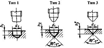 Примечания: 1. Предельные отклонения размера d1 не распространяются на отверстия типа 3. 2. Допускается до 1 января 1986 г. вместо d1 = 4,0; 5,5; 7,0; 8,5 мм применять соответственно d1 = 4,5; 6,0; 7,5; 9,0 мм. (Измененная редакция, Изм. № 1). |