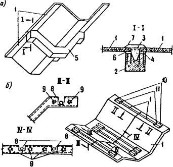 1. ОБЩИЕ УКАЗАНИЯОСНОВНЫЕ ПОЛОЖЕНИЯ1.1. Армоцементные конструкции в зависимости от их армирования подразделяют на конструкции: с сетчатым армированием - при их армировании частыми тонкими ткаными, сварными или плетеными проволочными сетками, равномерно распределенными по сечению элемента (черт. 1, а); с комбинированным армированием - при их армировании указанными сетками, равномерно распределенными по сечению элемента, в сочетании со стержневой или проволочной арматурой (черт. 1, б). Черт. 1. Армирование армоцементных конструкций а - сетчатое; б - комбинированное; 1 - частые тонкие тканые сетки; 2 - частые тонкие сварные сетки; 3 - стержневая или проволочная арматура 1.2. Армоцементные конструкции согласно СТ СЭВ 1406-78 должны быть обеспечены с требуемой надежностью от возникновения всех видов предельных состояний с помощью расчета, выбором материалов, установлением размеров элементов и их конструированием. 1.3. Армоцементные конструкции должны применяться, как правило, в неагрессивной среде. Допускается применение армоцементных конструкций в среде со слабой степенью агрессивного воздействия на железобетонные конструкции при выполнении требований, установленных СНиП II-28-73 для таких конструкций. 1.4. Выбор конструктивных решений армоцементных конструкций должен производиться исходя из технико-экономической целесообразности применения таких конструкций в конкретных условиях строительства с учетом максимального снижения их материалоемкости, трудо- и энергоемкости и стоимости. Армоцементные конструкции рекомендуется применять в элементах зданий и сооружений, для которых существенное значение имеют снижение собственного веса, уменьшение раскрытия трещин и обеспечение водонепроницаемости бетона. 1.5. При выборе конструктивных решений должны учитываться методы изготовления, монтажа и условия эксплуатации конструкций. Форма и размеры элементов должны приниматься исходя из наиболее полного учета свойств армоцементных конструкций, возможности заводского механизированного изготовления, удобства транспортирования и монтажа конструкций. 1.6. Армоцементные конструкции допускается применять в качестве опалубки для монолитных железобетонных конструкций. Для обеспечения совместной работы армоцементной опалубки и монолитного бетона на поверхности армоцементной опалубки должны быть выполнены пазы шириной до 10 мм, глубиной до 5 мм с шагом до 100 мм, а поверхность армоцементной опалубки должна быть обработана стальной щеткой и обдута сжатым воздухом. Для связи арматуры несъемной армоцементной опалубки с основной арматурой конструкции необходимо предусматривать в опалубке выпуски сеток и стержней. 1.7. Армоцементные конструкции и отдельные их элементы должны обладать необходимой прочностью, жесткостью, трещиностойкостью, устойчивостью и пространственной неизменяемостью на стадиях изготовления, транспортирования, монтажа и эксплуатации. 1.8. При проектировании сборных армоцементных конструкций особое внимание необходимо обращать на прочность, долговечность и технологичность соединений и узлов. Соединения и узлы сборных ограждающих конструкций должны удовлетворять также специальным требованиям к этим ограждениям (обеспечивать передачу усилий элементам несущих конструкций, выполнение теплотехнических требований, з