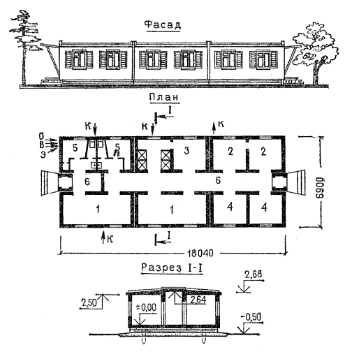 РАЙОННАЯ ЦЕНА № 15Общежитие на 50 чел. с центральным отоплением от теплосети, водопроводом и канализацией. Здание деревянное контейнерного типа. Строительный объем здания -1479,6 м3 (типовой проект 420-21-1)