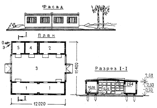 РАЙОННАЯ ЦЕНА № 25Буфет на 120 мест с водопроводом, канализацией и электроосвещением. Здание контейнерного типа со стальным объемным каркасом из отдельных плоских рам и наружной обшивкой из стали. Строительный объем здания - 434,4 м3 (типовой проект 5055-16)