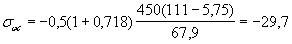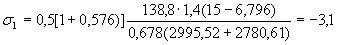 Д. Определение напряжений в среднем ребре и редуцируемой части обшивки По формуле [19] находим коэффициент b = (365,95 –100·0,832)/(265,95 + 100·0,832) = 0,5886. В обшивке напряжения определяются по формуле [12]