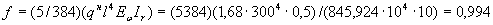 Д. Определение прогиба листа Определяем прогиб от действия нормативного значения равномерно распределенной нагрузки по формуле f=(5/384)(ql4/EI). Прогиб листа с учетом снижения модуля упругости Е асбестоцемента [п. 3.4] следует определять как на действие всех нагрузок, так и на действие постоянных и временных длительных нагрузок. Принимаем модуль упругости асбестоцемента при расчете на действие всех нагрузок по [табл. 2] Е = 0,13·105 МПа. Модуль упругости асбестоцемента при расчете на действие постоянных и временных длительных нагрузок в соответствии с [п. 3.4] будет равен: Е = 0,13·105·0,65 = 0,0845·105 МПа. Используя полученные выше значения нормативных нагрузок и момента инерции I, определяемого по формуле [33]: