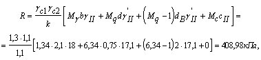 Мс - изгибающий момент на уровне перекрытия. Сдвигающую силу Fsa и изгибающий момент М0 в уровне подошвы следует определять по формулам: Fsa = - R + (Pg3 + 2Рq)(h2 + h3)/2; (95) М0 = -RH + Pqh2/2 + Рg3h2/6 - Ge + Mc. (96) 7.14. Расчетные усилия в конструктивных элементах подвала (ригелях, колоннах, плитах перекрытия, фундаментах и т.п.) следует определять по известным правилам строительной механики. 7.15. Расчет оснований при деформациях производит по п. 6.14. 7.16. Расчетное сопротивление грунта основания R, кПа, определяется по формуле