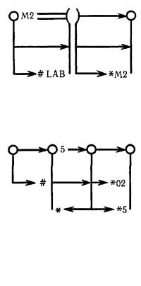 Черт. 2 3.1.3. Вложенное соединение структур Р-схем осуществляется путем замены дуги структуры, в которую производится вложение, на последовательное соединение дуги того же направления и вкладываемой структуры. При этом соединительная линия из конечной вершины вкладываемой структуры и сама конечная вершина (если она не является конечной вершиной параллельного соединения структур) сливаются соответственно с соединительной линией и вершиной, в которые входила заменяемая дуга. Начальной и конечной вершинами результирующей структуры остаются соответственно начальная и конечная вершины структуры, в которую производится вложение. Примеры вложенного соединения структур Р-схем приведены на черт. 3 и 4. На черт. 3 вложение осуществляется путем замены дуги со стрелкой справа, а на черт. 4 - слева. На черт. 3 изображены примеры вложенного соединения: а - структуры 1 в в структуру 1 б; б - последовательного соединения структур 1 б и 1 а в структуру 1 в ; в - структуры 1 в в структуру 1 в; г - структуры 2 б в структуру 1 б.