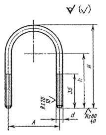 Дата введения 01.07.81 (Измененная редакция, Изм. № 2). 1. Настоящий стандарт распространяется на скобы, применяемые для крепления патрубков. Требования настоящего стандарта являются обязательными. (Измененная редакция, Изм. № 2). 2. Конструкция и основные размеры скоб для патрубков должны соответствовать указанным на чертеже и в таблице.