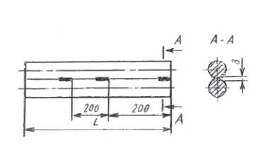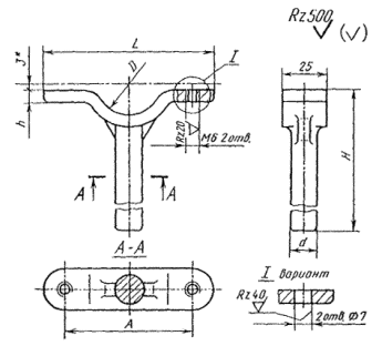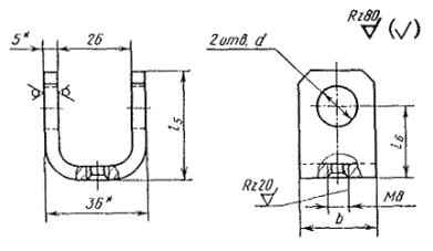 Пример условного обозначения кронштейна исполнения 1 для трубы с буртами Dу = 15 мм: Кронштейн 15-1 ГОСТ 24199-80 То же, исполнения 2: Кронштейн 15-2 ГОСТ 24199-80 То же, исполнения 1, для трубы с гладкими концами Dу = 40 мм, длиной L = 350 мм: Кронштейн 45-350-1 ГОСТ 24199-80 То же, исполнения 2: Кронштейн 45-350-2 ГОСТ 24199-80 (Измененная редакция, Изм. № 2). 3. Конструкция и основные размеры стержня должны соответствовать указанным на черт. 2 и в табл. 2.