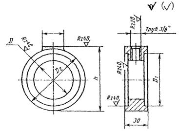 Пример условного обозначения воздушника для трубы наружным диаметром Dн = 45 мм: Воздушник 45 ГОСТ 24200-80 3. Конструкция и основные размеры корпуса должны соответствовать указанным на черт. 2 и в табл. 2. Черт. 2 Таблица 2 Размеры в мм