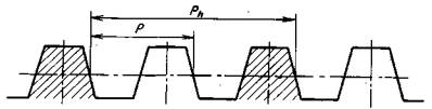 es - верхнее отклонение диаметров наружной резьбы; ES - верхнее отклонение диаметров внутренней резьбы; ei - нижнее отклонение диаметров наружной резьбы; EI - нижнее отклонение диаметров внутренней резьбы. 2. ПРОФИЛЬ2.1. Профиль трапецеидальной многозаходной резьбы - по ГОСТ 9484. 2.2. Ход резьбы вычисляется по формуле Ph = P · n. Ход и шаг трапецеидальной двухзаходной резьбы показаны на черт. 1.