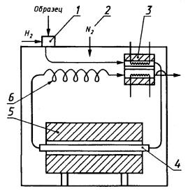 Дата введения 01.01.84 Настоящий стандарт устанавливает метод определения содержания примесей газовой хроматографией и расчет содержания н-алканов при массовой доле их 90,0 - 99,5 % в жидких нефтяных парафинах, выкипающих при температуре 170 - 360 °С, включая узкие фракции жидких парафинов С10-С13 и С14-C19, вырабатываемых на промышленных предприятиях. (Измененная редакция, Изм. № 2). 1. ОТБОР ПРОБПробу жидкого парафина отбирают по ГОСТ 2517 из резервуара после отстоя не менее 2 ч и фильтруют через фильтровальную бумагу. (Измененная редакция, Изм. № 1). 2. АППАРАТУРА, РЕАКТИВЫ И МАТЕРИАЛЫХроматограф газовый ЛХМ-8МД модели 1 или 3. Допускается применять хроматографы других моделей, переоборудованные для присоединения приставки КТХ-1, позволяющей поддерживать температуру газохроматографической колонки до 450 °С и использовать в качестве газа-носителя водород при условии получения результатов в соответствии с точностью метода. Приставка к хроматографу КТХ-1 состоит из следующих основных частей: колонка, нагреватель (печь), трубка задержки газа-носителя (помещены в термостат хроматографа), черт. 1, блок терморегулирования, милливольтметр, блок защиты и управления. Термостат хроматографа с приставкой КТХ-1 1 - испаритель; 2 - подача инертного газа в термостат; 3 - газохроматографический детектор по теплопроводности; 4 - колонка с цеолитом; 5 - нагреватель; 6 - трубка задержки газа-носителя Черт. 1 Цеолиты СаА (цеолит типа 5AZ) свежие (нерегенерированные), используемые на установках адсорбционного выделения парафинов в стационарном слое цеолитов, размер частиц 0,25 - 0,5 мм. Аттестованные стандартные образцы ГСО состава жидких парафинов № 4439 - 4442 с известным содержанием н-алканов (для повторных выпусков к номеру ГСО добавляют букву П и год изготовления). В отдельных случаях допускается применять стандартные образцы предприятия (СОП), разработанные с помощью указанных ГСО и утвержденные головной метрологической организацией министерства (ведомства). Контроль правильности результатов с применением ГСО проводят в соответствии с показателями точности метода. Инертный газ - азот технический по ГОСТ 9293. Водород технический марки А или Б по ГОСТ 3022-80 или гелий высокой чистоты с объемной долей основного вещества не менее 99,9 %. Микрошприц на 10 мм3 или 1 мм3 (Газохром). Секундомер. Ступка фарфоровая с пестиком по ГОСТ 9147, № 4, 5. Печь муфельная электрическая, обеспечивающая нагрев до 1000 °С. Сита с размером ячеек 0,25 и 0,5 мм. Лупа измерительная по ГОСТ 25706. Сетка проволочная. Щипцы тигельные. Воронка стеклянная В 25 - 38 по ГОСТ 25336. Тигель низкий № 4 ГОСТ 9147. Трубка резиновая 1М 4,5´1,3 по ГОСТ 5496. Линейка измерительная по ГОСТ 427. Расходомер пенный. Фильтр ФОБ по ТУ 6-09-1678. (Измененная редакция, Изм. № 1, 2). 3. ПОДГОТОВКА К ИСПЫТАНИЮ3.1. Цеолиты СаА типа 5AZ толкут в фарфоровой ступке и отсеивают фракцию 0,25 - 0,5 мм, используемую в качестве наполнителя. 3.2. Тигель с наполнителем в количестве, достаточном для разовой засыпки колонки, помещают в муфельную печь и прокаливают при температуре 450 - 500 °С в течение 5 ч. 3.3. Горячий наполнитель засыпают в колонку через подсоединенную к ней резиновой трубкой воронку. Концы колонки закрывают пробками из сетки длиной 10 мм. Разд. 3. (Измененная редакция, Изм. № 1). 4. ПРОВЕДЕНИЕ ИСПЫТАНИЯ4.1. Оптимальные условия анализа: длина колонки 100 мм, внутренний диаметр колонки 3 мм, объ