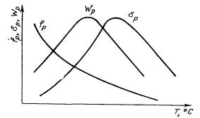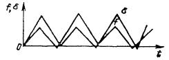 где ep, fp, Wp - значения параметров утомления при однократном нагружении, когда N0 = 1; e, f, W - значения параметров утомления, при которых усталостная выносливость равна N циклов; be, bf, bW - коэффициент, характеризующий зависимость усталостной выносливости от значения параметров механического воздействия. Для линейных зависимостей N(e, f, W) коэффициенты be, bf и bW соответствующих уравнений постоянные. Для кривых 1 и 2 (черт. 1) и кривых черт. 2 коэффициенты усталостной выносливости не постоянные и зависят от соответствующих параметров механического нагружения, то есть be(e), bf(f) и bW(W). Это обусловлено нелинейностью зависимости f(e), возрастанием значимости химических факторов усталости с уменьшением механического воздействия, резким уменьшением разрушаемости материала в области небольших деформаций и ориентационным упрочнением резин при статическом растяжении. С целью количественной характеристики разных факторов усталости применяют следующие уравнения: При наличии не слишком большого статического растяжения В уравнениях (4) - (6): Для характеристики усталостных свойств резины рекомендуется значения N определять в диапазоне от 102 до 5×106 циклов. Коэффициенты Коэффициент z находится с помощью соотношения (5). Поскольку кривые усталостной выносливости или усталостной прочности не параллельны друг другу (см. черт. 1 и 2), то сравнение резин по усталостной выносливости или усталостной прочности должно производиться при напряжениях и деформациях, соответствующих работе резины в изделиях. Усталостную выносливость при малых значениях механических параметров можно найти экстраполяцией зависимостей lgN - (lge, lgf, lgW), при этом диапазон экстраполяции не должен превышать одного-полутора десятичных порядков значений N. При экстраполяции усталостной выносливости в область больших значений механических параметров (KlgN = 0) диапазон экстраполяции увеличивается до двух-трех десятичных порядков. Испытания резин на усталостную выносливость в большинстве случаев проводятся в режиме заданных смещений или деформаций образца. Однако в изделиях часто реализуются режимы заданных напряжений или энергий. Если у сравниваемых резин величины динамического модуля различны, то при одинаковых деформациях у более жестких резин значения f и W будут больше, а усталостная выносливость будет различна для разных режимов утомления. Для построения зависимостей N(f) или N(W) необходимо экспериментально получить зависимости f(e) и W(e). Если зависимости N(f) и N(W) для разных резин известны, то проводят линии f = const и W = const и находят соответствующие значения для сравниваемых резин. 2. Влияние частоты деформации Экспериментально установлено, что изменение частоты от 0,1 до 50 Гц существенно не влияет на величину усталостной выносливости, определяемой при одинаковых фактических значениях e, f и W и одинаковой температуре. Вследствие этого время до разрушения образца уменьшается с увеличением частоты нагружения. Если испытания проводятся не при постоянной температуре, а в условиях саморазогрева массивных образцов, то с повышением частоты происходит возрастание температуры в испытываемом образце. Это вызывает снижение усталостной прочности и выносливости. 3. Влияние температуры С повышением температуры усталостная прочность и усталостная выносливость меняются сложным образом. Зависимо