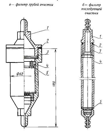 2. Аппаратура, реактивы и растворыФильтр грубой очистки - 1 шт. (черт. 2а). Фильтр (черт. 2б); для отделения органических веществ - 1 шт.; Н-катионитовый - 2 шт.; анионитовый - 1 шт.; комбинированный (катионито-анионитовый) - 1 шт. Фильтры представляют собой цилиндрические сосуды, корпуса которых выполнены торга стекла, с герметично уплотненными крышками и штуцерами для подвода исходной и отвода очищенной воды. Вата медицинская гигроскопическая по ГОСТ 5556-81. Фильтры