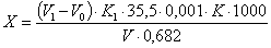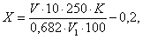 где V - объем раствора Б в растворе сравнения, см3; 10 - масса общего хлора в 1 см3 раствора Б, мкг; 250 - вместимость колбы, см3; К - коэффициент испарения (ГОСТ 28326.1, приложение); 0,682 - плотность жидкого аммиака, г/см3; V1 - объем пробы аммиака, взятый для анализа, см3; 100 - объем анализируемого раствора, см3; 0,2 - поправка, учитывающая массу общего хлора в растворе сравнения, млн-1 (мг/кг). После преобразований, учитывая, что V1 = 150 см3, формула примет вид Х = 0,24×V×К - 0,2. За результат анализа принимают среднеарифметическое результатов двух параллельных определений, расхождение между которыми не превышает допускаемое расхождение, равное 0,05 млн-1 (мг/кг) при доверительной вероятности Р = 0,95. Допускаемая относительная суммарная погрешность результата анализа ± 25 % при доверительной вероятности Р = 0,95 (для массовой доли общего хлора 0,1 млн-1 (мг/кг)). ПРИЛОЖЕНИЕ