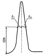 где bф - ширина фронта на половине высоты пика, мм; bт - ширина тыла на половине высоты пика (черт. 8), мм. Коэффициент асимметрии вычисляют как среднее значение результатов двух-трех параллельных определений. Допускаемое отклонение коэффициента асимметрии от среднего значения не должно превышать 10 % (отн.). Типовая хроматограмма асимметричного пика 4-пиколина Черт. 8 ПРИЛОЖЕНИЕ 3Обязательное ОПРЕДЕЛЕНИЕ ОТНОСИТЕЛЬНОГО ГРАДУИРОВОЧНОГО КОЭФФИЦИЕНТАДля определения относительного градуировочного коэффициента пиридина по отношению к н-нонану готовят синтетическую смесь, для чего берут примерно равные навески чистого пиридина и н-нонана. Результаты взвешивания записывают с точностью до четвертого десятичного знака. Смесь хроматографируют в условиях, соответствующих методике анализа. Относительный градуировочный коэффициент (К) вычисляют по формуле