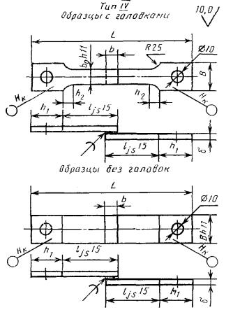 Толщина материала δ > 3 мм; M = (B + a)/2; L = 2(h + l) - b; K = b + h2 Черт. 13 Варианты исполнения головок образцов Черт. 14 Таблица 8 Размеры головок образцов, мм