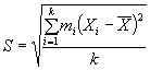 где n - число результатов испытаний; mi - частота появления случайного значения в интервале; Xi - значение переменной величины;