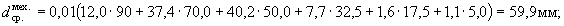 Расхождение между результатами расчета составляет 1,6 мм (59,9 мм - 58,3 мм). Следовательно, ошибка