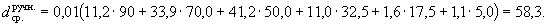 8.1. Сходимость Расхождения результатов двух определений среднего размера куска (п. 9.6), полученных в одной и той же лаборатории, одним и тем же лаборантом, с применением одного и того же оборудования на пробах, составленных из частных проб, взятых из одной грузовой партии кокса, не должны превышать указанных в таблице. 8.2. Воспроизводимость Установить воспроизводимость для определений, проводимых в различных лабораториях, не представляется возможным, так как во время транспортирования возможно измельчение проб кокса и изменение гранулометрического состава. 9. ЗАМЕЧАНИЯ ПО МЕТОДИКЕ ОПРЕДЕЛЕНИЯДля каждого испытания комплект сит следует подбирать в соответствии с приложением 2. Для несортированного кокса используют сита с номинальными размерами отверстий 125, 100, 80, 71, 63, 50, 40, 31,5, 20 и 10 мм. Для крупного кокса используют сита с размером отверстий 200, 180, 160 и 140 мм, В таких случаях удобно применять пластины с одинарными отверстиями. Для сортированного кокса (или «орешка») применяют сита с номинальными размерами отверстий 50, 45, 40, 35, 31,5, 25, 20, 16, 10, 5,6 и 2,8 мм. Допускается превышение номинального размера отдельных отверстий сит до 2 % - для сит с размером отверстий 40 мм и более до 0,5 мм для сит с размером отверстий менее 40 мм. При превышении этих значений для одного или нескольких отверстий последние должны быть заделаны. Сита заменяют, если износ 10 % отверстий превышает допускаемые отклонения. Допускается применять сита с квадратными отверстиями. Метод ручного встряхивания для всех классов крупности применяют при рассеве термоантрацита и при аварийном выходе из строя механических грохотов. 9.5. Механизированный рассев допускается при условии, что результаты определения среднего размера куска не превышают результатов определения при ручном перемещении или ручном встряхивании более чем на 3 % (п. 9.6). 9.6. Для всех методов рассева средний размер вычисляют по результатам ситового анализа кокса. Средний размер вычисляют следующим образом: размер отверстий сита, мм, а, Ь, с, d,..., h, j, k; кумулятивные проценты А, В, С, D,..., Н, J, К. А = 0 % и R = 100 % (т.е. k = 0 мм). Средний размер (dcp) вычисляют по формуле