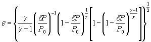 Если при измерении массового расхода газа относительные разности между давлением изоэнтропически заторможенного газа и статическим давлением δР/Р0 = (Р0 - Р)/Р0 изменяются, например от 0,01 до 0,02, то коэффициенты влияния могут быть приняты равными