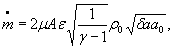 Обозначения: А - площадь проходного сечения канала; γ - показатель изоэнтропы; z0 - коэффициент сжимаемости изоэнтропически заторможенного газа; R - удельная газовая постоянная; μ - коэффициент расхода;