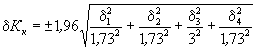 где d1 - погрешность регистрирующего устройства [находится в пределах: для измерителя отношений напряжений ±6 %, для микровольтметра (микроамперметра) ±2 %]; d2 - погрешность, обусловленная нелинейностью характеристики преобразования приемника (находится в пределах ±3 %); d3 - погрешность, обусловленная нестабильностью мощности лазерного излучения (находится в пределах ±5 %); d4 - погрешность, обусловленная неточностью юстировки (находится в пределах ±2 %); 1,96; 1,73; 3 - коэффициенты, зависящие от распределения погрешности измерений и установленной вероятности. Д.3 Погрешность измерения коэффициента эллиптичности элемента dКэ min определяют по формуле