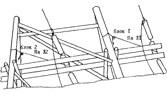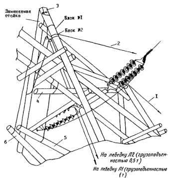 подъем опоры производится через блок, устанавливаемый на стойках «азика».
