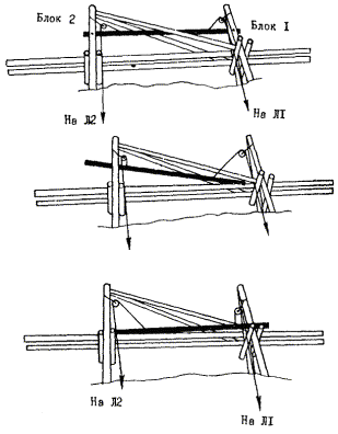 устанавливается на расстоянии 15 - 20 м от вершины поднимаемой опоры. Вторые