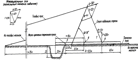 . Схема подъема опоры и диаграмма усилий