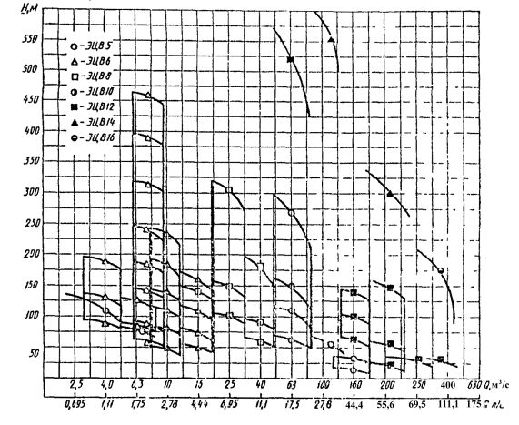 6. Распределение агрегатов, указанных в табл. 1 и 2, в поле Q (подача) - Н (напор) должно соответствовать указанному на черт. 1 и 2.