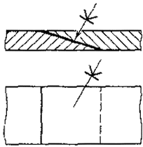 1.2. Если предмет, изображенный на сборочном чертеже, имеет ряд однотипных соединений с заклепками одного типа и с одинаковыми размерами, то заклепки, входящие в соединение, следует показать условно в одном-двух местах каждого соединения, а в остальных - центровыми или осевыми линиями (черт. 1). 1.3. Если на чертеже необходимо показать несколько групп заклепок различных типов и размеров, то рекомендуется отмечать одинаковые заклепки одним и тем же условным знаком (черт. 2а) или одинаковыми буквами (черт. 2б). Черт. 1 Черт. 2 2. СОЕДИНЕНИЯ ПАЯНЫЕ И КЛЕЕНЫЕ2.1. В соединениях, получаемых пайкой и склеиванием, место соединения элементов следует изображать сплошной линией толщиной 2s (черт. 3). Черт. 3 2.2. Для обозначения паяного и клееного соединения следует применять условный знак, который наносят на линии-выноске сплошной основной линией: