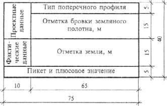 8.1 Поперечные профили земляного полотна железнодорожных путей выполняют с учетом данных, приведенных в таблице (сетке), помещаемой под поперечным профилем. Боковик таблицы выполняют по форме 12.
