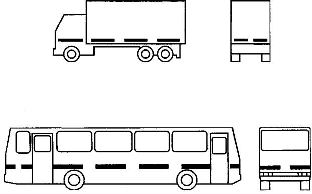2.1 Контурную маркировку следует наносить таким образом, чтобы она способствовала как можно более точной идентификации всей формы транспортного средства сбоку и сзади.