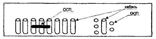 МОСКВА Введение.Настоящие рекомендации подготовлены на основании выполненных ВНИИПО МВД РФ в 1990 - 1993 гг. Работ по созданию огнетушителей самосрабатывающих порошковых (ОСП) и результатов натурных испытаний. 1. Общие положения.В соответствии с правилами пожарной безопасности Российской Федерации НПБ 01-93 огнетушители ОСП предназначены для тушения пожаров вместо переносных огнетушителей или дополнительно к ним в замкнутых помещениях объемом до 50 м3. ОСП выпускается по ТУ 4854-002-08378309-93 и эксплуатируются согласно паспорта НТ304.000 ПС. Компоненты заряда ОСП нетоксичны и по степени воздействия на организм человека соответствуют 3 классу опасности по ГОСТ 12.1.007-76. 2. Назначение ОСП.2.1. ОСП предназначен для тушения без участия человека, загораний огнетушащим зарядом с порошком типа ПСБ-3 горючих жидкостей (класс пожара В), газов (класс пожара С) и электрооборудования, а огнетушащим зарядом с порошком типа Пирант-А, также твердых материалов (класс пожара А) в небольших по объему технологических, складских и бытовых помещениях, шкафах с электрооборудованием и других замкнутых объемах. 2.2. Тушению огнетушителями не подлежат щелочные и щелочноземельные металлы, а также вещества, горение которых может происходить без воздуха. 3. Основные технические характеристики ОСП.3.1. Огнетушители в зависимости от температуры срабатывания соответствуют следующим типам: ОСП-1 с температурой срабатывания............................................................... 105 °С; ОСП-2 с температурой срабатывания............................................................... 200 °С; 3.2. Объем, защищаемый одним огнетушителем, м3............................................. 5 - 8 3.3. Диапазон температур эксплуатации, °С............................................ от -50 до +50 3.4. Габаритные размеры корпуса, мм: - диаметр, не более.................................................................................................. 54 - длина, не более..................................................................................................... 500 3.5. Масса заряженного ОСП, кг, не более................................................................. 1,2 4. Устройство и принцип действия ОСП.4.1. Огнетушитель ОСП представляет собой герметичный стеклянный сосуд, заполненный огнетушащим порошком и газообразователем, устанавливаемый горизонтально с помощью держателя над местом возможного загорания или равномерно по объему исходя из норм п. 3.2. 4.2. ОСП срабатывает под воздействием тепла непосредственно от очага горения. При возникновении загорания и нагреве газообразователя (желтый слой) до 100 или 200 °С, в зависимости от марки огнетушителя, последний разлагается, давление в сосуде возрастает, что приводит к разрушению сосуда и выбросу огнетушащего порошка. 4.4. Для обеспечения противопожарной защиты небольших технологических объектов, например, шкафов с электрооборудованием, ОСП размещают по одному в каждой отдельной секции. 4.5. Для защиты вводов и выводов горизонтальных кабельных трасс рекомендуется размещать огнетушители из расчета один ОСП на 1,0 - 1,5 метра длины кабеля, оптимальное расстояние от огнетушителя до кабеля составляет 10 - 20 см. Огнетушители начинают размещать на расстоянии не более 1 м от места ввода, вывода кабеля. В случае защиты нескольких горизонтальных уровней кабельных трасс, рекомендуется размещать ОСП в шахматном порядке согласно схеме, представленной на рис. 1. При установке ОСП на вертикальных участках кабельных трасс огнетушители размещают в шахматном порядке как с внешней, 