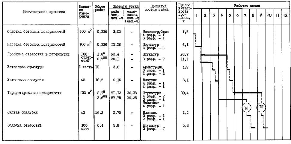 Примечание. ТП - технологический перерыв. 5.5. УСИЛЕНИЕ БАЛОЧНОЙ КЛЕТКИ СПОСОБОМ ТОРКРЕТИРОВАНИЯ ПО I И II КОНСТРУКТИВНОЙ СХЕМЕ Таблица 10