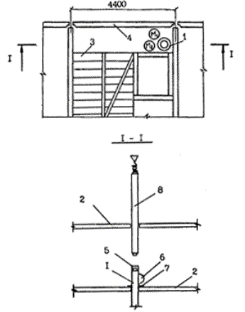 1. ОБЛАСТЬ ПРИМЕНЕНИЯТиповая технологическая карта разработана из расчета устройства 25 м мусоропровода девятиэтажного жилого дома. Карта рекомендуется для применения при монтаже типовых асбестоцементных труб мусоропровода длиной до 4 м и диаметром 400 мм крупнопанельных многоэтажных жилых зданий серии 111-121. При привязке типовой технологической карты к конкретному объекту и условиям строительства принятый в карте порядок выполнения работ по установке мусоропровода, размещение машин и оборудования, объемы работ, калькуляцию затрат труда, график выполнения работ, средства механизации уточняют в соответствии с проектными решениям. 2. ОРГАНИЗАЦИЯ И ТЕХНОЛОГИЯ ВЫПОЛНЕНИЯ РАБОТМонтаж труб мусоропровода осуществляют поэтажно по окончании монтажа плит перекрытия, лестничных маршей и площадок, установки нижней трубы мусоропровода в камеру мусороприёмника. Трубы мусоропровода в зону монтажа доставляют в контейнерах на полуприцепах, буксируемых автомобилями-тягачами. Монтаж труб мусоропровода с предварительно вырезанным окном под загрузочный клапан выполняют по технологии, описанной далее. Монтажники М-1 и М-2 на нижеустановленную трубу мусоропровода надевают асбестоцементную муфту и визуально проверяют ее проектное положение. Просмоленную паклю помещают в зазор между трубой мусоропровода и муфтой и производят зачеканку, после чего укладывают резиновое кольцо по верхней грани нижней трубы мусоропровода. Крановщик подает строп к месту строповки трубы мусоропровода. Строповщик заводит нижнюю часть захвата в трубу мусоропровода 9 и вращением ручки 1 прижимает колодки захвата 5 к внутренней поверхности трубы. В строповочное звено 2 заводят грузовой крюк крана и переводят трубу из горизонтального положения в вертикальное. После чего строповщик дает команду на подъем. Подняв трубу на 0,5 м проверяют прочность строповки. Затем трубу транспортируют к месту установки. Схема строповки труб мусоропровода представлена на рис. 1. СХЕМА СТРОПОВКИ ТРУБ МУСОРОПРОВОДА Рис. 1 1 - ручка; 2 - строповочное звено; 3 - винт; 4 - муфта верхняя; 5 - колодки; 6 - звено; 7 - муфта нижняя; 8 - строп; 9 - труба мусоропровода Расстроповку после установки осуществляют вращением ручки 1 в обратном направлении. Остальное время такелажник на приобъектной площадке занимается выполнением работ по подготовке следующей трубы и захвата к строповке, а также совместно с крановщиком занимается другими работами, сопутствующими монтажу. Крановщик останавливает опускание трубы на высоте 20 см от технологического отверстия в плите перекрытия лестничного узла. Монтажник М-1 принимает трубу, направляет в отверстие и даёт команду крановщику на опускание трубы. Крановщик плавно опускает трубу, а монтажник М-2, стоя на плите перекрытия смонтированного этажа, принимает трубу и направляет ее в муфту. Выверку вертикальности трубы производят с помощью рейки с отвесом. Монтажник М-1 следит по рейке за вертикальностью трубы, а монтажник М-2 выравнивает имеющиеся отклонения, после чего монтажник М-1 расстроповывает трубу. Монтажник М-2 охватывает трубу полукольцами хомута на уровне лестничной площадки, затем, располагая зажимы хомута над закладными деталями площадки, вводит болты в отверстия зажимов, навинчивает на них гайки и затягивает ключом. Монтажники М-1 и М-2 повторно укладываю