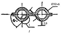 где А - расход трилона на титрование пробы, см3; К - поправочный коэффициент к нормальной молярности раствора трилона; 56,08 - молекулярная масса СаО. 2.5.5 Оформление результатовРезультаты осмотра оборудования, определение количества и химического состава отложений заносят в журнал осмотра теплосилового оборудования. Данные анализов отложений с каждой ступени выражают процентным содержанием кремниевой кислоты, оксидов (железа, меди, натрия, кальция, магния, цинка и т.д.), щелочи, а также вес всех этих компонентов на данной ступени. 3 МЕТОДИКА КОНТРОЛЯ СОСТОЯНИЯ КОТЕЛЬНЫХ ТРУБ И ОПРЕДЕЛЕНИЯ КОЛИЧЕСТВА ОТЛОЖЕНИЙ3.1 Организация контроляНаиболее доступным и представительным способом контроля за состоянием внутренней поверхности экранных труб является периодическая вырезка контрольных образцов в зоне максимального теплового потока. В отдельных случаях, в основном при пуске головных котлов и при исследовании причин повреждения экранных труб, а также в случае использования одного жидкого топлива или газа с добавкой более 50 % мазута, вместе с этим применяется наблюдение за температурой металла труб с помощью установки специальных термометрических вставок. На рисунке 1 показано устройство такой вставки для гладких экранных труб, на рисунке 2 - устройство и установка вставки для экранов с плавниковыми трубами, на рисунке 3 - для топочных экранов барабанных котлов.