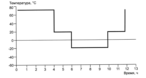 4.2.3. Моделирование воздействия высокой температуры окружающей средыa) Требование Внутренние компоненты не должны проявляться на поверхности батарей при использовании их при высокой температуре. b) Испытания Полностью заряженные батареи подвергают воздействию умеренно высокой температуры для проверки целостности их корпусов. Затем батареи помещают в термостат температурой (70±2)°С и циркуляцией воздуха, выдерживают в течение 7 ч, после чего извлекают и оставляют при комнатной температуре. c) Критерий соответствия Отсутствие деформации корпуса батареи, а также внутренних компонентов на ее поверхности. 4.2.4. Температурное циклированиеa) Требование Чередующиеся воздействия высокой и низкой температурой не должны привести к возгоранию или взрыву. b) Испытания Испытания проводят в соответствии с графиком изменения температур, приведенным на рисунке 1, в следующей последовательности. Полностью заряженные аккумуляторы или батареи помещают для температурного циклирования (минус 20°С, плюс 75°С) в камеры с приточной вентиляцией в следующей последовательности. Этап 1. Аккумуляторы или батареи помещают в среду с окружающей температурой (75±2)°С и выдерживают 4 ч. Этап 2. Устанавливают температуру окружающей среды (20±5)°С в течение 30 мин и выдерживают аккумуляторы и батареи при этой температуре не менее 2 ч. Этап 3. Устанавливают температуру окружающей среды минус (20±2)°С в течение 30 мин и выдерживают аккумуляторы и батареи при этой температуре не менее 4 ч. Этап 4. Устанавливают температуру окружающей среды (20±5)°С в течение 30 мин и выдерживают аккумуляторы и батареи при этой температуре не менее 2 ч. Этап 5. Повторяют этапы 1-4 еще четыре раза (цикла). Этап 6. После 5-го этапа ставят аккумуляторы и батареи на хранение перед проведением осмотра на 7 сут. Примечание - Это испытание может проводиться в одной камере, обеспечивающей изменение температуры, или в трех отдельных камерах при трех различных испытательных температурах. с) Критерий соответствия Отсутствие возгорания, взрыва, течи электролита.
